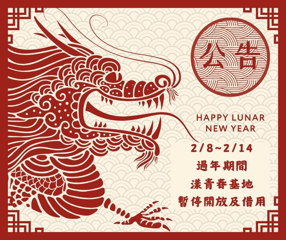 漾青春基地2/8~2/14暫停開放及借用